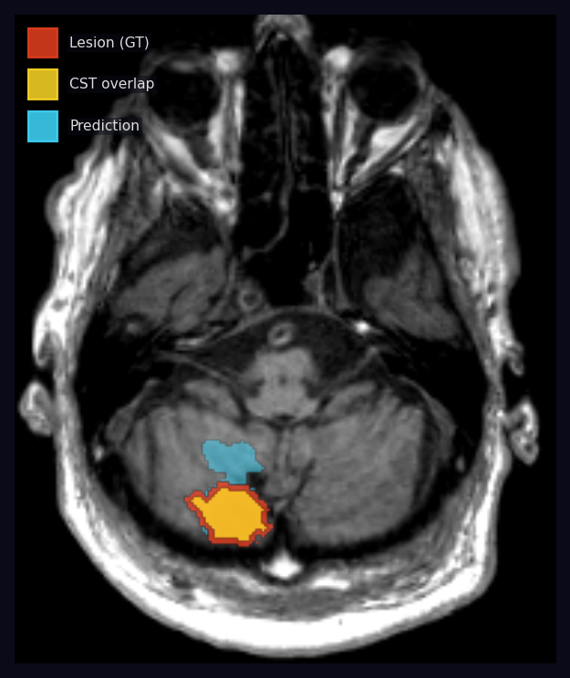 Explore segmentation results and outcome predictions from 177 stroke patients. Compare 8 deep learning loss functions β and see how lesion location in motor pathways relates to upper-limb and walking outcomes at 12 weeks.